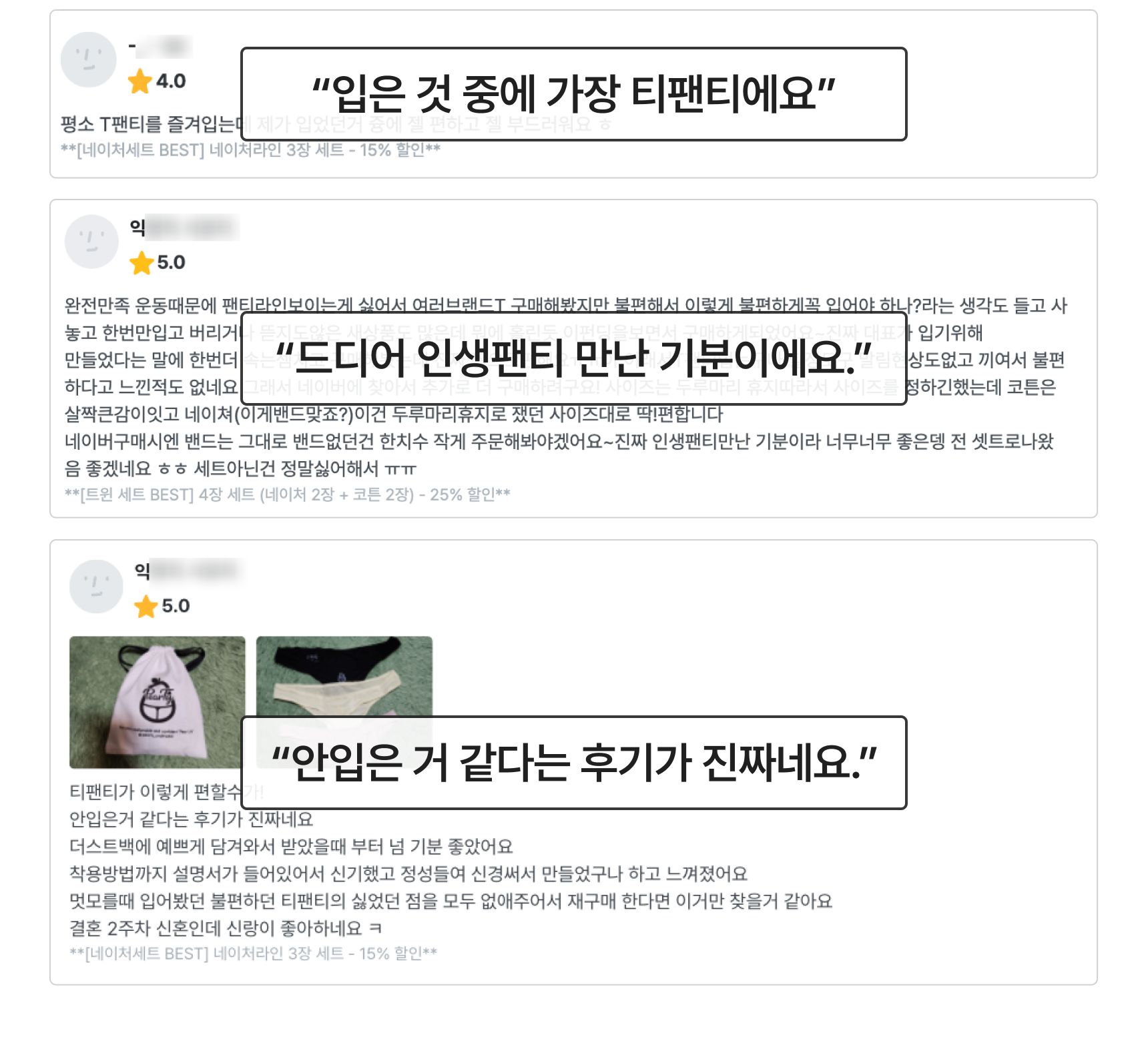 - 속옷 특성상 한번이라도 '착용'하거나, 착용하지 않았더라도 ‘세탁’한 경우