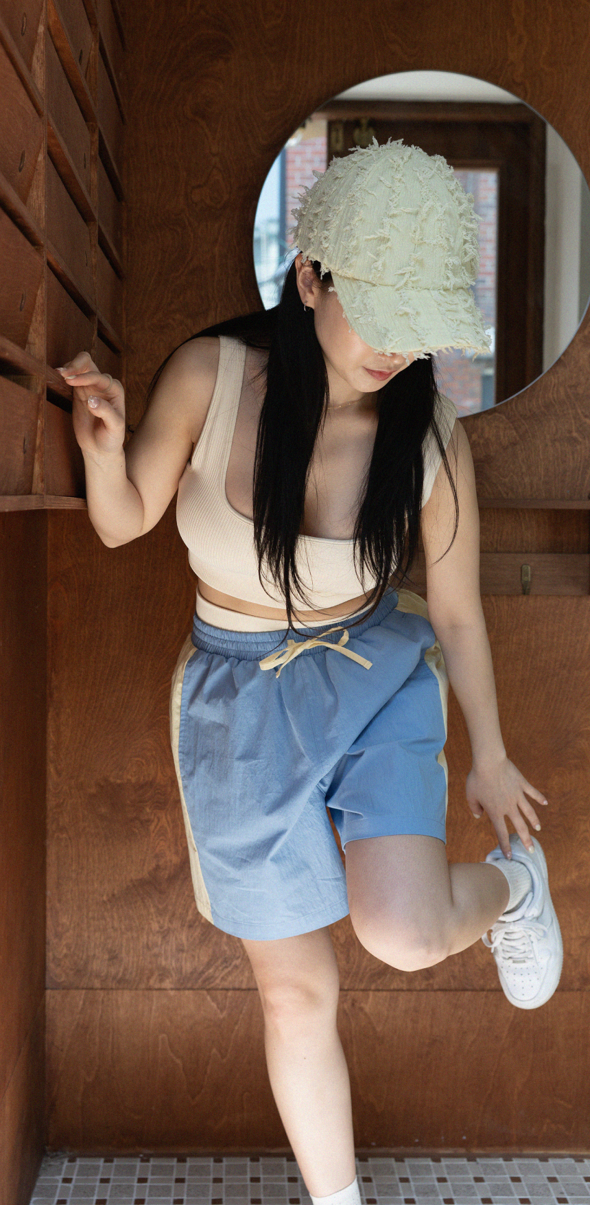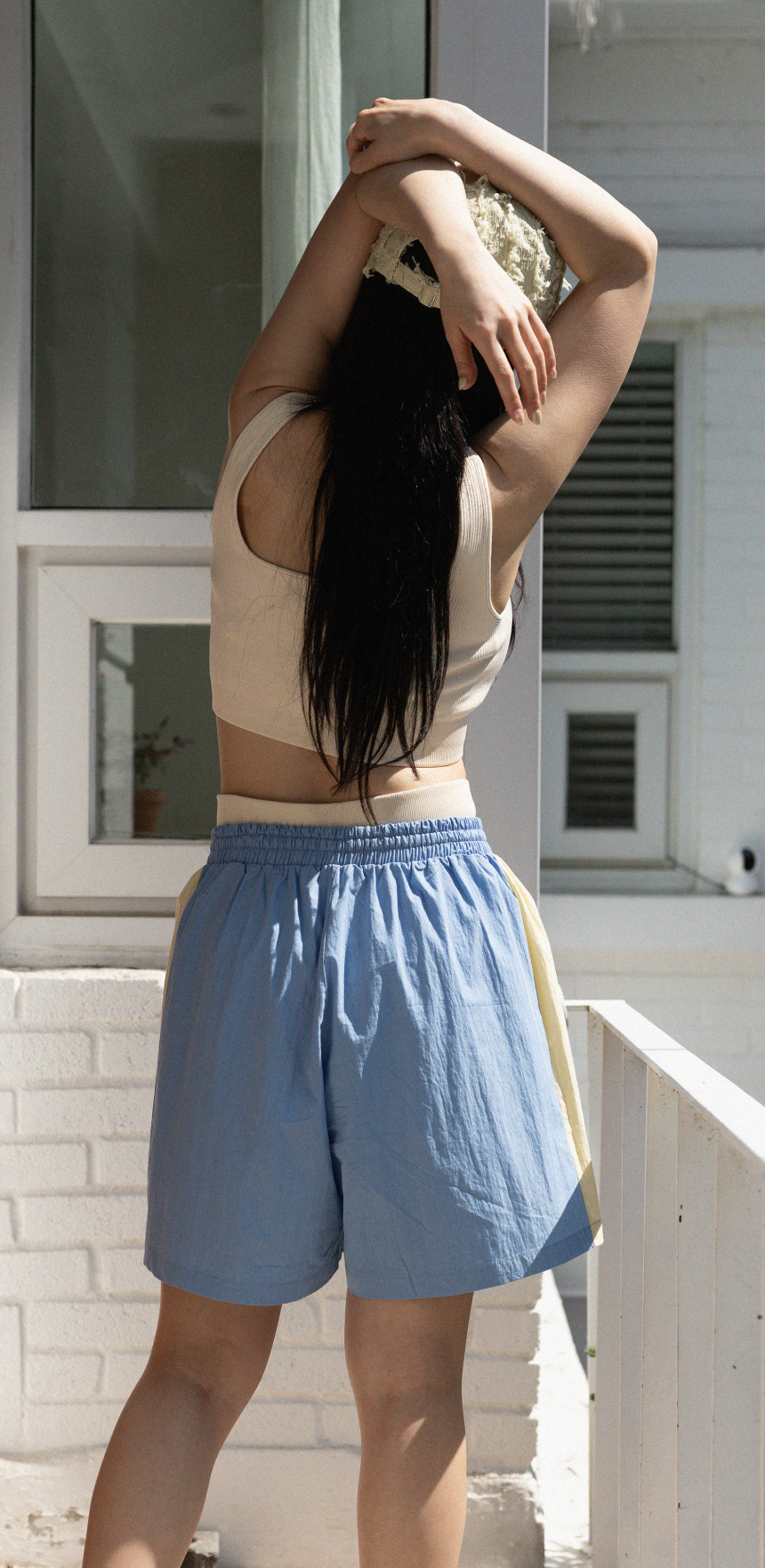 - 스판 제품은 원단 특성상 물세탁 후 건조 시 5% 정도 수축이 있을 수 있으나 착용 후 자연스럽게 다시 회복됨