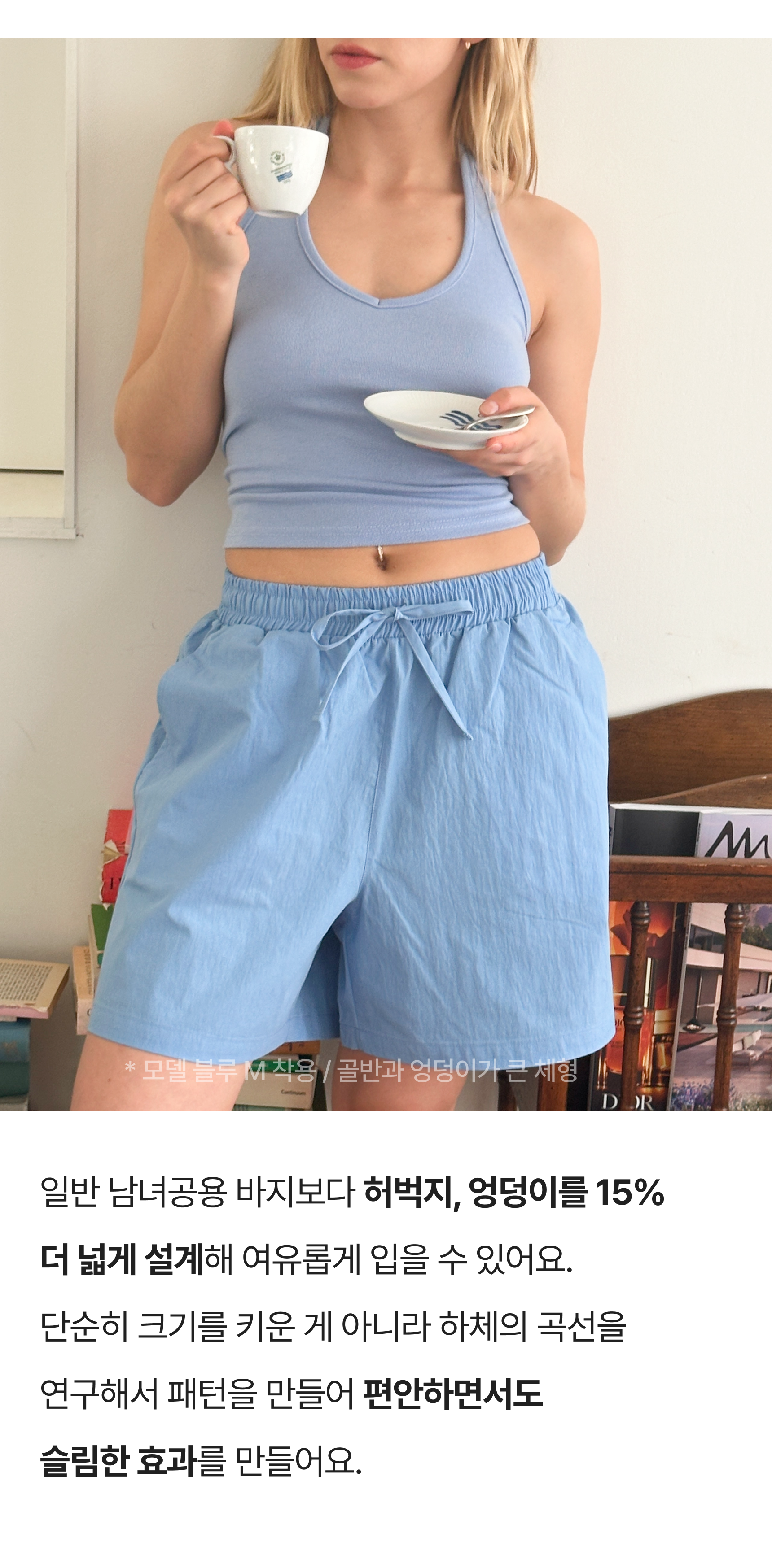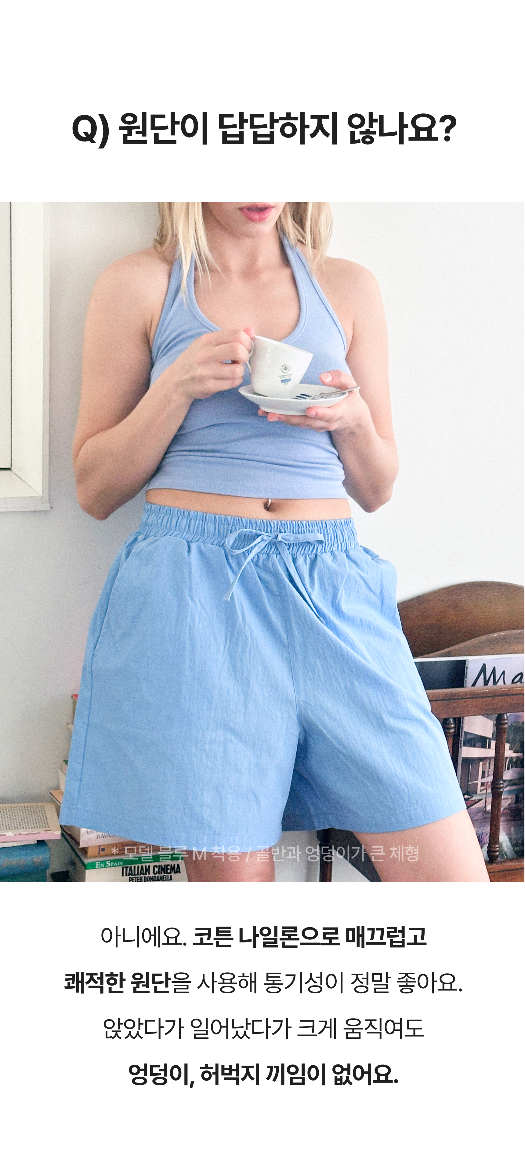 - 스판 제품은 원단 특성상 물세탁 후 건조 시 5% 정도 수축이 있을 수 있으나 착용 후 자연스럽게 다시 회복됨