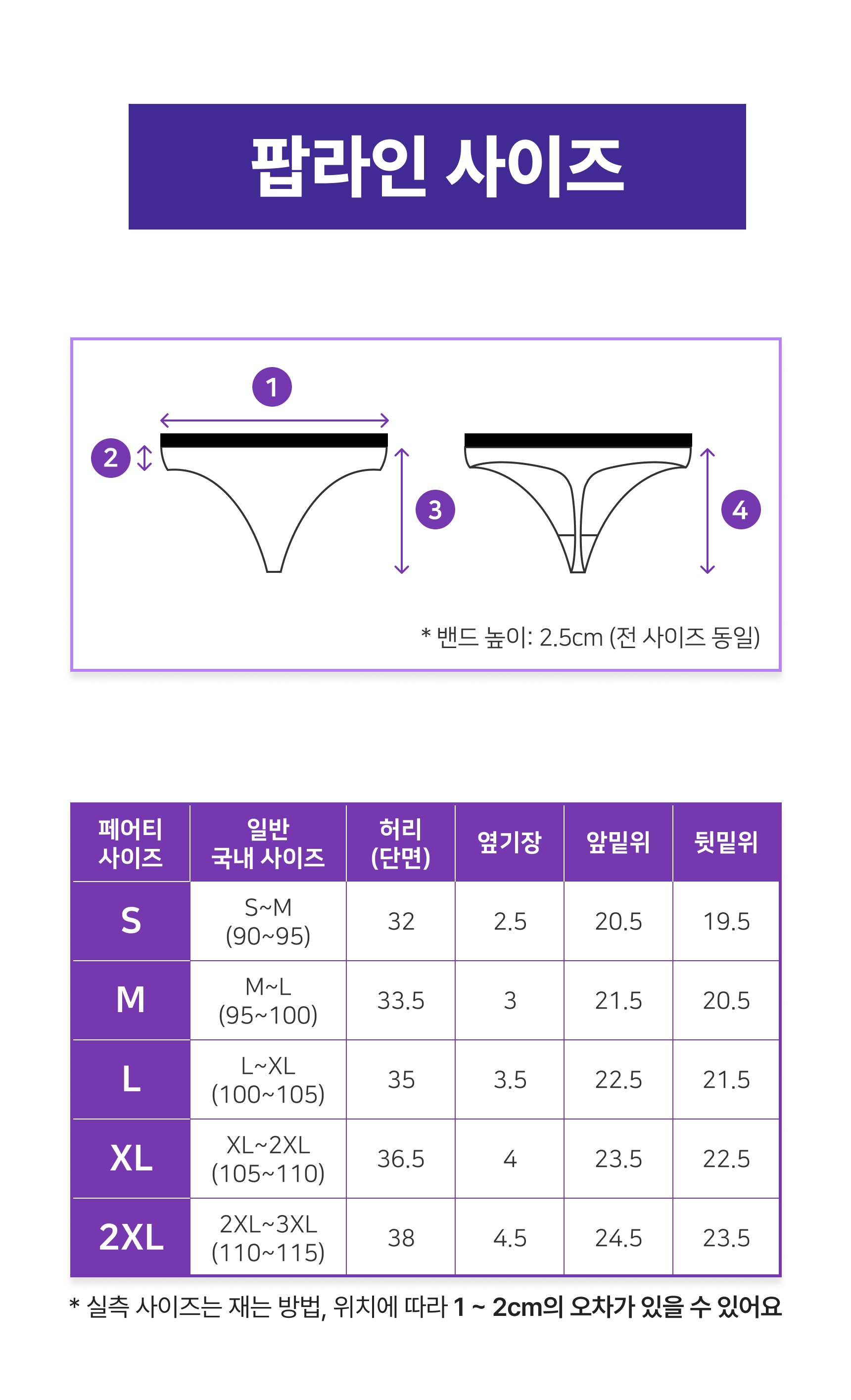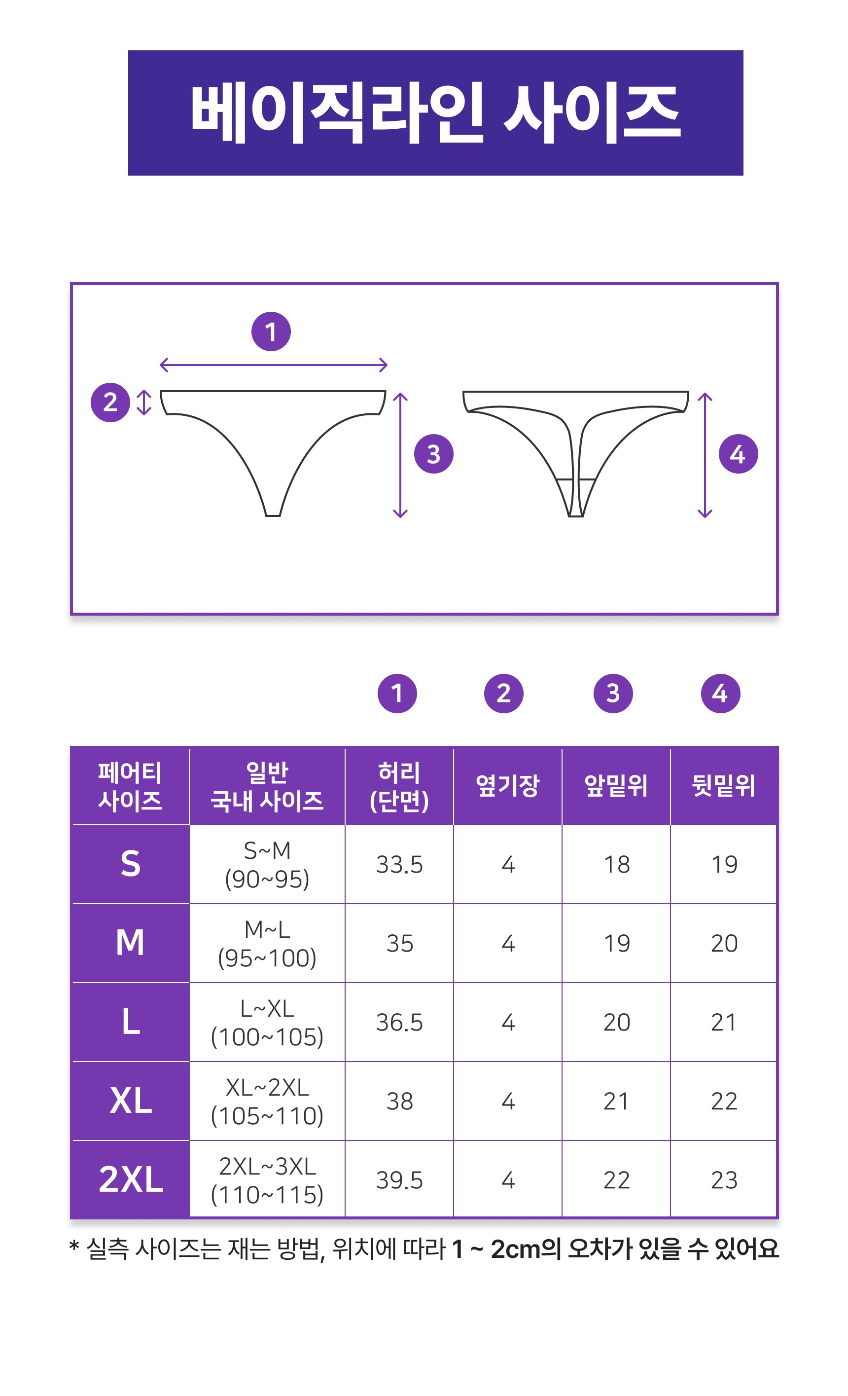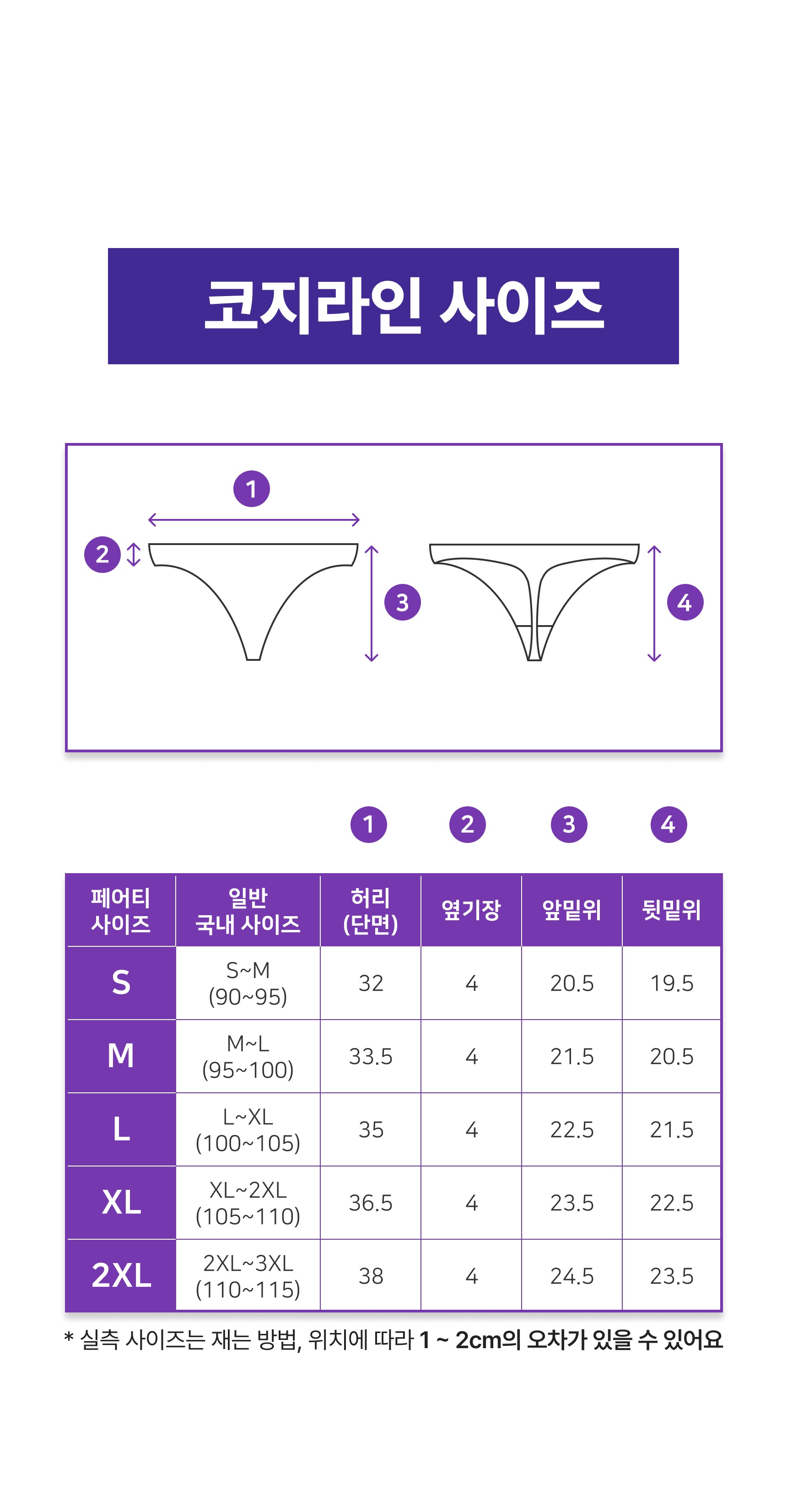 - 사이즈 측정 위치, 방법에 따라 사이즈표와 1~2cm 오차 가능성 있음
